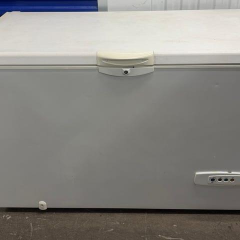 260 liter Phillips/Whirlpool fryseboks med toppåpning. Modellen har manuell temperaturinnstilling på frontpanelet, med kontrollhjul og indikatorlamper. Innvendig er det trådkurver for organisering av innholdet og et åpent rom for større varer. Har merker og skraper men fungerer helt fint!