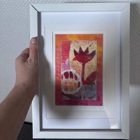 Blomsterbilde veggkunst kvadratisk lilla motiv med ramme