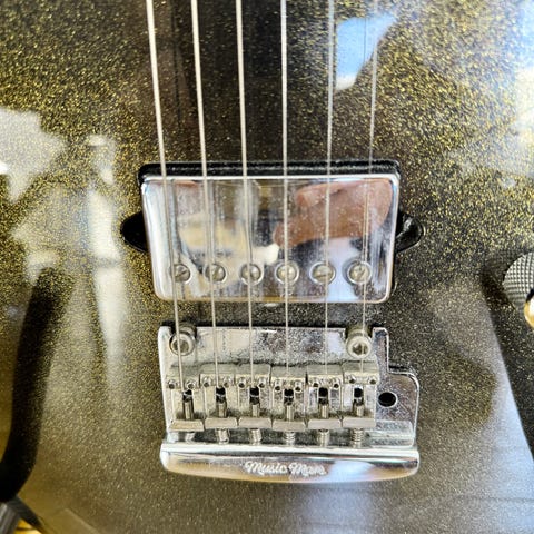 Som sagt har den to single-coil pickuper med høy output, en treveis toggle-bryter, én volumkontroll og én tonekontroll.