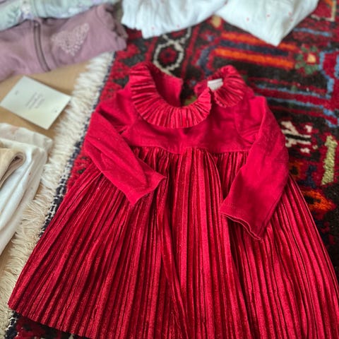 Jeg har klær til babyjenter til salgs, inkludert kjoler i størrelse 62. To bilsetetrekk, ett veldig tynt, det andre litt tykkere. Og to svøptepper. Alt i perfekt stand.