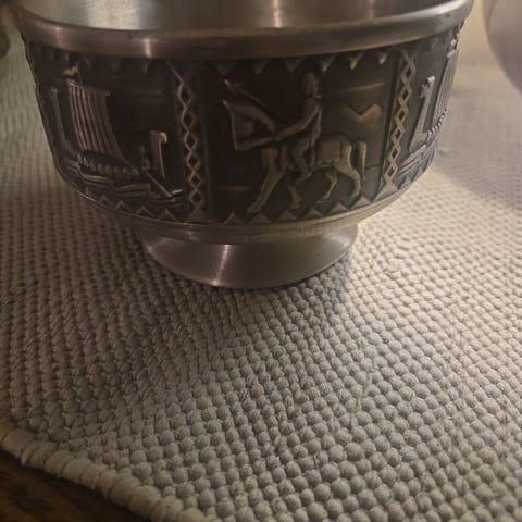 Dekorativ tinn bolle til frukt eller annen servering.