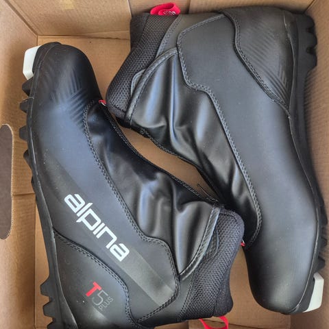 Alpina ST 10 langrennsstøvler i fargen sølv/svart i størrelse 44 (UK 9,5 / US 10 / 280 mm). Støvlene har overtrekk med glidelås foran for å beskytte snøringen mot snø og fukt. Grovmønstret såle gir godt feste ved gange uten ski. Leveres i original eske slik den fremgår av bildene.