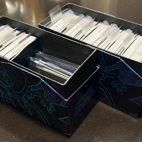 føler med: samlerkassen (elite trainer box 25th Celebrations) for å holde alt, med delere for å holde det organisert.