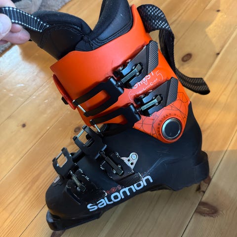 Salomon Ghost alpinstøvler i størrelse 25,5 (tilsvarer str 40) Støvlene har fire spenner og powerstrap øverst for god tilpasning rundt leggen. Ytterskall i plast med svart underdel og oransje skaft. Passer til bruk i alpinbakke med vanlige alpinbindinger.