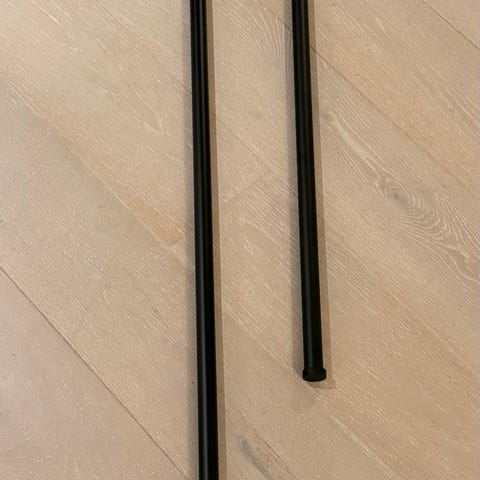 Følger med svart gardinstang og veggfester, så her får du komplett løsning klar til montering.