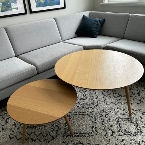 Møbelsnekret på bestilling, tjukk heltre eik. Solid pent salongbord. 70cm diameter og 42,5 cm høyt.