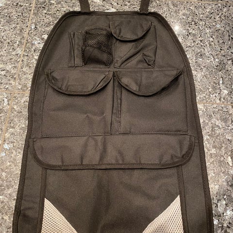 Setebeskytter med praktiske lommer som beskytter baksiden av forsetestolene mot skitne barnesko. Kan vaskes på 40 grader. Farge: Blå. Mål: ca. 64 * 41 cm.