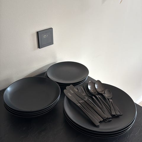 Har også to serveringsfat og to store serveringsboller
