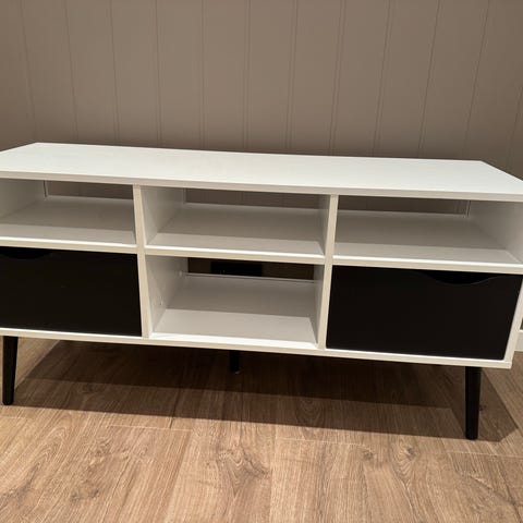 Skjenken fremstår som ny, og er godt ivaretatt. Det er skjært et lite hull i bak-/bunnplaten for å få gjennom en stikkontakt, men dette er pent gjort og ikke synlig fra utsiden.