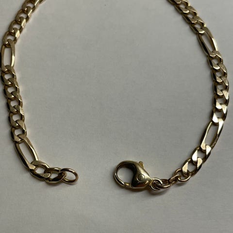 585 karat gull armbånd som er brukt en gang. Armbåndet er fra Gullfunn og original prisen er 5 079 kr. Armbåndet er 16,5 cm langt inkl lås. Veier 1,5 g. Må hentes.