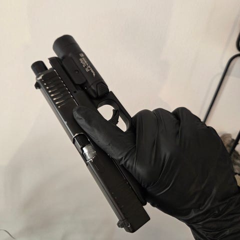 Selger min greitt modifiserte Ruger MkIII 22/45, en pistol i utgangspunktet utviklet for billig motorikktrening for de som skyter 1911