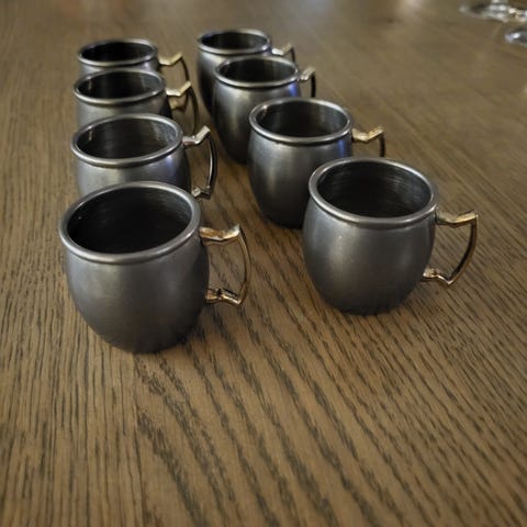 Flotte 6 stk snaps krus /kopper i tinn selges.