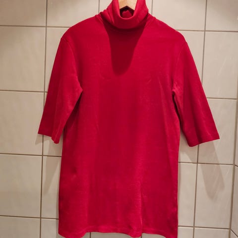 Zara hverdagskjole for dame i størrelse S-M. Kjolen er rød og laget i viskose. Modellen har lange ermer, rund hals og to påsydde lommer foran. Passer som enkel hverdagskjole.