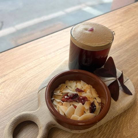 Keramikk gryte med lokk i brun glasur. Yttersiden har en lys, spraglet glasur med mørkere brun kant, mens innsiden og lokket er ensfarget mørkebrunt. Gryten egner seg til servering av varme og kalde retter, sauser eller småretter ved bordet. Lokket har et markert håndtak øverst for enkel av- og påsetting. Passer som bordservering eller som del av et servise i keramikk.