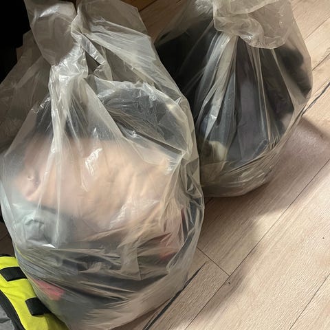 Merker er bl.a H&M, superdry, Umbro, Dickies, Adidas (genser der den snoren har blitt frynsete)