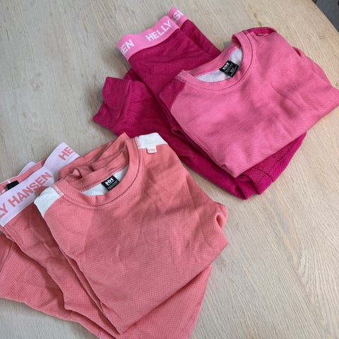 To Helly Hansen ullundertøy for jente i størrelse 128. Og noen superundertøy sett fra Bruse og ukjent merke. Helly Hansen settene er ull med et syntetisk lag innderst mot hud. Jenten min har sensitiv hud og disse settene har vært helt supre. Passer som innerste lag til hverdagsbruk og utendørsaktiviteter i kjøligere vær. Ullundertøyet er tilpasset barn og gir god bevegelsesfrihet og komfort.