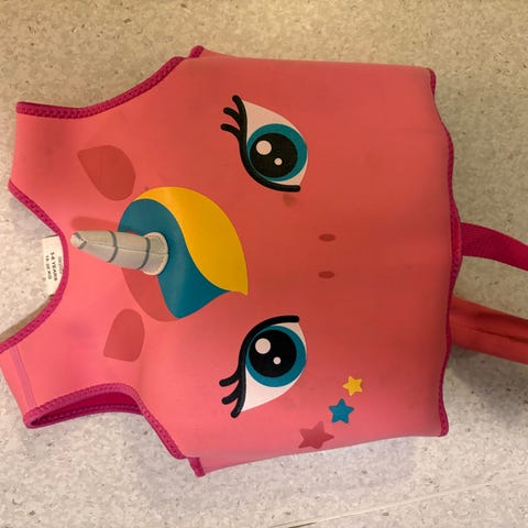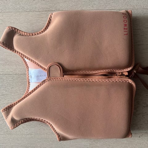 Liewood flytevest for barn i vektklasse 19–30 kg. Vesten er laget i mykt materiale med glatt overflate og har rosa farge. På baksiden er det motiv med enhjørning, skyer og regnbue. Modellen har glidelås og borrelås foran samt justerbar stropp mellom bena for økt stabilitet. Egnet som svømmehjelp for barn som kan oppholde seg i vann under tilsyn av voksen. CE-merket i henhold til produsentens informasjon på innsiden av vesten.