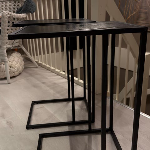 Selger dette sidebordet fra Skeidar pga plassmangel. Bordplaten er av sort MDF med sortlakkert understell. Må hentes.
