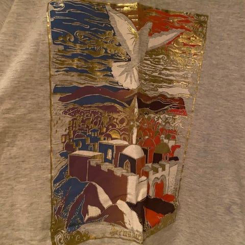 Vakker T-skjorte med nydelig trykk av Jerusalem. 🕊️ Laget i Israel.💙🤍