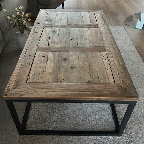 Selger et litt retro salongbord / sofabord i en malt oker / gulfarge. Veldig kult, men har dessverre ikke plass. Er noe små merker i malingen her og der, men synes ikke særlig godt.