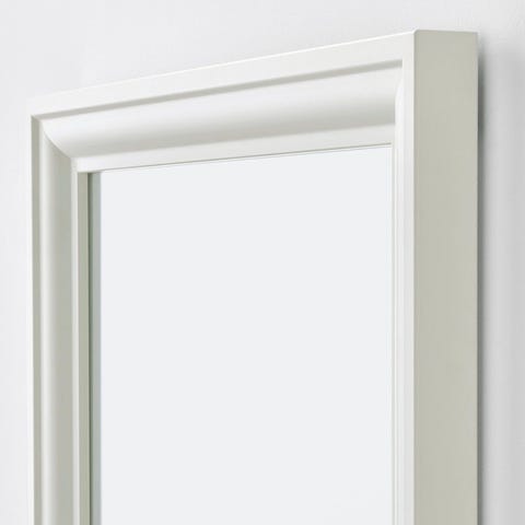IKEA veggspeil i rektangulær form med hvit ramme. Speilet er beregnet for montering på vegg og kan brukes i blant annet gang, soverom eller garderobe for helfigur- eller halvfigurspeiling. Nøytral utforming som passer inn i ulike interiørstiler.