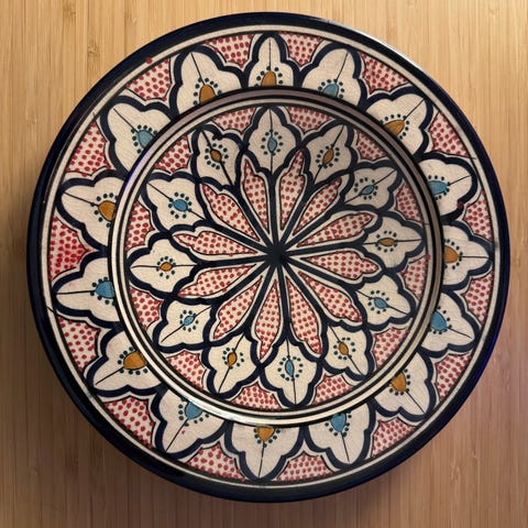 Dette er et dypt fat fra Egersund Fayancefabrik, sannsynligvis produsert mellom 1920 og 1940.
