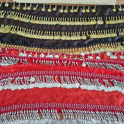 Beltet er laget av skinn/lær og enten messing eller messing belagt tinn.
