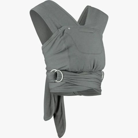 Close Caboo ringslynge babybæresele i mørk grå farge. Bæreselen har ringlås som gjør det mulig å justere passformen rundt bærer og barn. Utformet for å bære baby tett inntil kroppen, med stoff som støtter barnets hode, nakke og rygg. Stoffet er mykt og formbart for å gi god støtte og komfort for både bærer og barn.