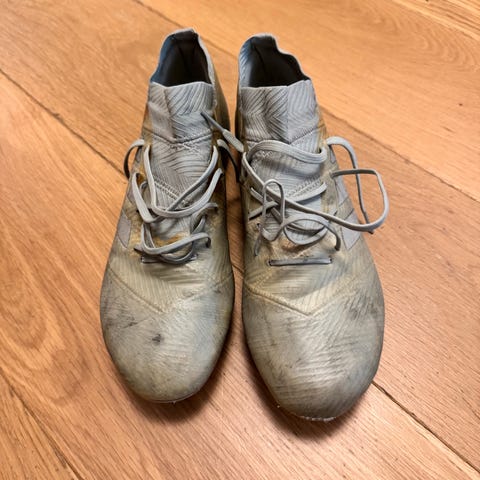 Adidas Crazyfast fotballsko med knotter i grå farge. Skoene har snøring og overdel i lett syntetisk materiale med tekstilpartier. Yttersålen har faste knotter til bruk på gress eller kunstgress. Egnet som fotballsko for trening og kamp. Kjønn er ikke spesifisert av produsent.