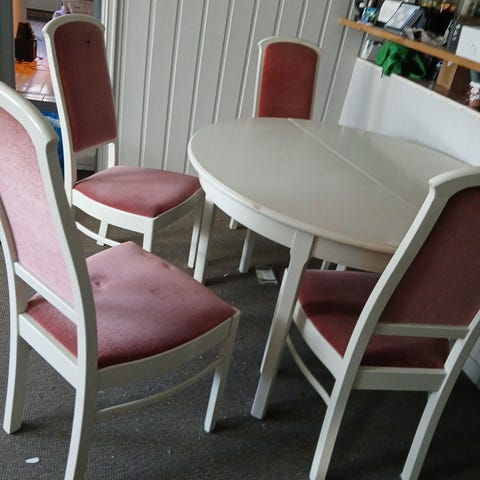 Spisestue/ kjøkken bord med 4 stoler i tre og metall