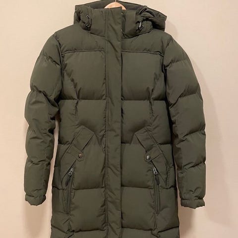 Modellen Liv parka, en bestselger fra Urban Pioneers. Virkelig god og varm jakke, bare akkurat litt for liten for meg. Pen grønnfarge. Meget pent brukt. Ingen bruksmerker, og like fluffy som ny.
