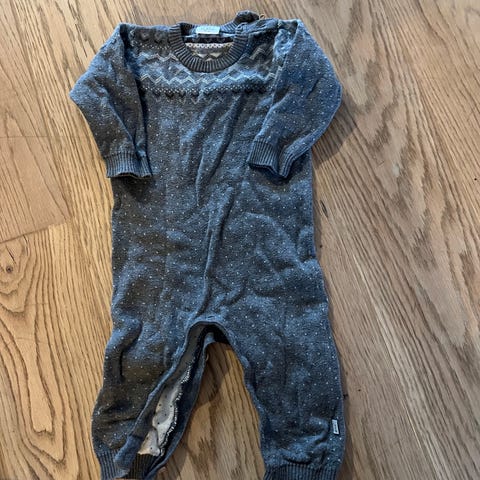 Hust & Claire heldress i ull til jente i størrelse 74. Heldressen er flerfarget med mønster og har ribbekanter i kontrastfarge på ermer og ben. Den har knepping foran og nedover det ene benet for enklere av- og påkledning. Egnet som myk og varm hverdagsdress eller som innerste lag på kjøligere dager.