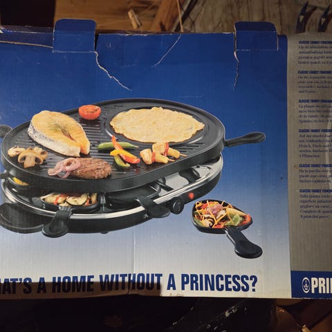 ny raclettegrill med stekeplate og småpanner