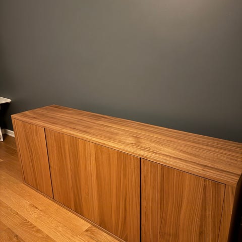 Utgått modell fra IKEA sin serie Stockholm. Kjøpte sjenken for 2,5 år siden. Noen bruksmerker på et av hjørnene og noen svake streker øverst (se bilder)