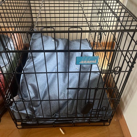 Hundebur i metall med uttakbart bunnbrett.
