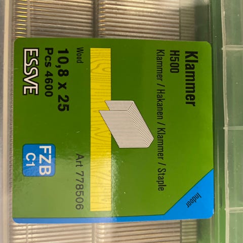 - Essve Brads F18 dykkert FZB, dimensjon 1,2 x 16 mm, innendørs bruk. Uåpnet eske, 10 000 stk.