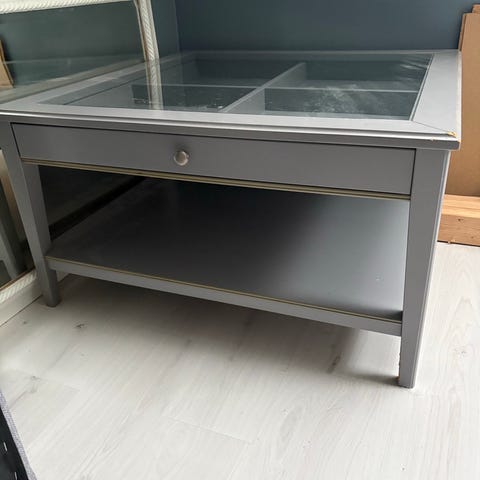 Bohus sofabord Rektangulær bordplate i svart utførelse med slanke, rette ben. Passer som sofabord i stue eller som lavt avlastningsbord. Mål og materiale kan kontrolleres nærmere ved behov, da dette ikke fremgår tydelig av bildene.