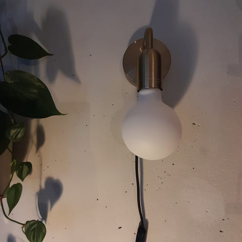 Selgeren en liten pendel lampe som har teak del som er 14cm i lengde. Selges uten pære og da kan den sendes som liten pakke.