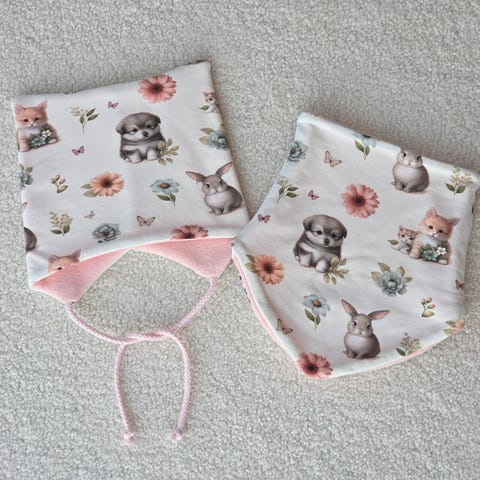 Hjemmesydd lue og hals. Ca str 1-2 år.