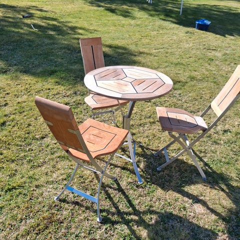 Selger 4 dekkstoler og dekkbord for båt. Pent brukt og i fin stand.