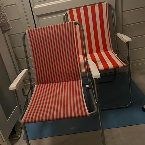 - 2 dekkstoler med lav rygg (Nypris 800,- pr. stk)