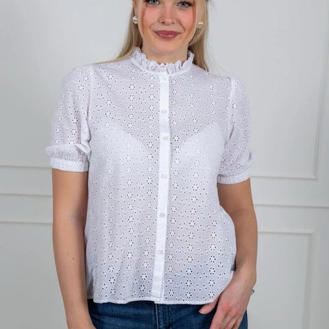 Pent brukt hvit skjørt i størrelse L med knyting og strikk i livet. Ingen synlige bruksmerker, fremstår som nytt. 100% bomull. Modell Cresta.