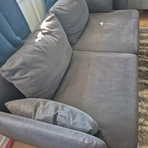 Er 2 flekker jeg ikke har klart å fjerne i vask. Trekk kan også kjøpes nytt fra Ikea.