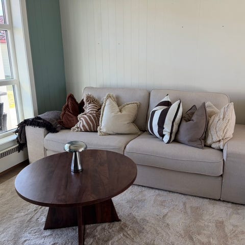 Har ikke putene.. De kan eventuelt kjøpes via IKEA.Men om noen trenger en ny sofa del er denne veldig fin da den er i fin stand og ikke slarkete.