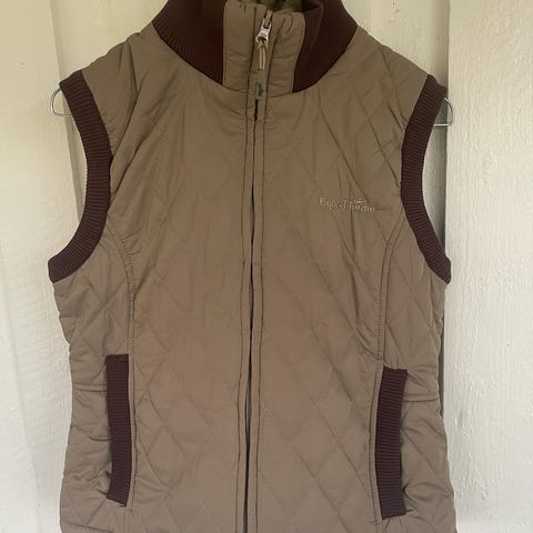 LeMieux lang vattert vest i mørk grønn farge for dame i størrelse EU 38 (UK 10/US 6). Modellen er ermeløs og går godt ned på låret. Vesten har hette med avtagbar fuskepelskant, gjennomgående glidelås foran og sidelommer med glidelås. Quiltet design gir jevn fordeling av vattering. Egnet som ytterplagg i kjøligere vær eller som ekstra isolerende lag over genser eller jakke.