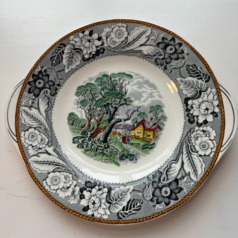 Egersund fajanse serveringsfat svart-hvitt motiv