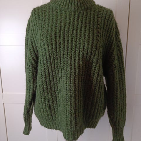 Grønn strikket camo mønstret genser, ganske kort. Str S.
