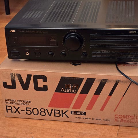 JVC stereoforsterker i sølvfarge.