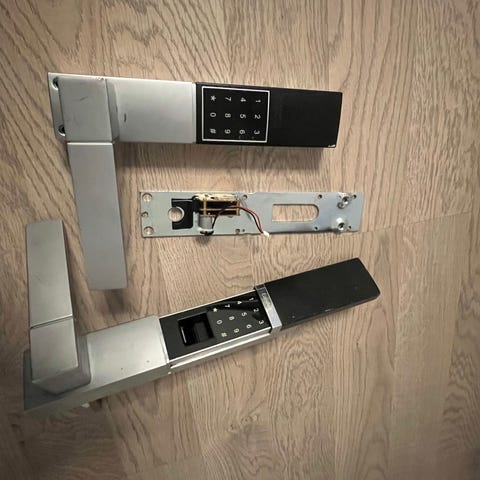 Kodelås fungerer veldig bra. En håndtak side er løs. Alt fungerer som den skal.