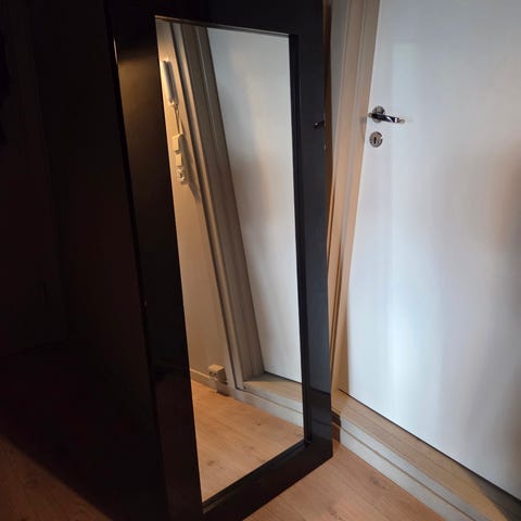 Veggspeil med bred, sort ramme fra Ikea, 95x190cm, pent brukt